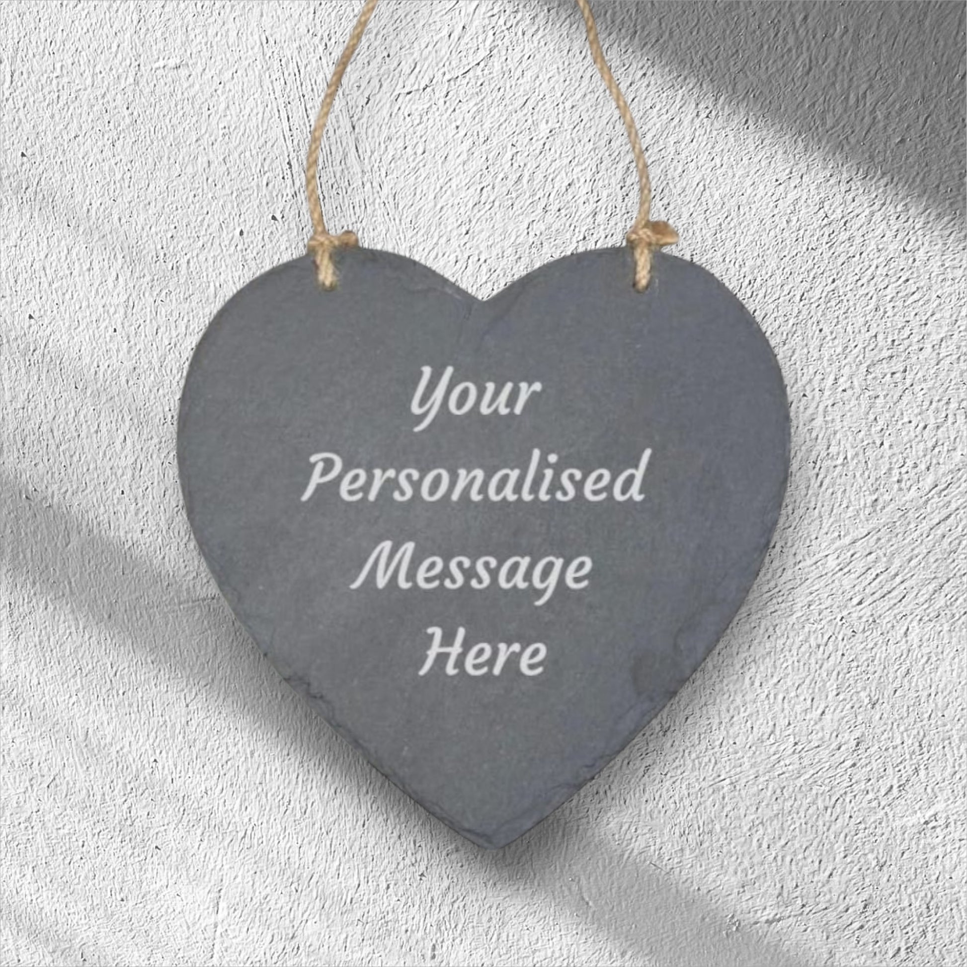 Personalized Engraved Heart Slate Hanging Sign – 24.5 cm High – Custom Text & Design